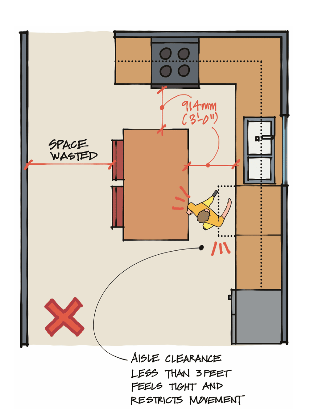 Hello Reader, The kitchen triangle is a fundamental layout principle that connects the cooktop, sink, and refrigerator in a smooth, functional flow. Without this triangle, the kitchen can feel cramped, inefficient, and tiring to use. It ensures that movement between the key work areas is quick and natural, reducing unnecessary steps and improving overall usability in everyday tasks. For a functional layout, all three legs of the triangle should be close in size to keep movement efficient and balanced. Each leg should ideally fall be tween 1200 mm to 2740 mm (4 to 9 feet). The total sum of all three legs should not exceed 8230 mm (27 feet). Kitchen triangle workflow - For an efficient kitchen workflow, the sink should be placed at the center of the work triangle. This follows the natural sequence where you take food from the refrigerator, move to the sink for washing or preparation, and then continue to the cooktop for cooking. Dishwasher and Sink - Many people place the dishwasher right under the sink without thinking about how it opens and functions. This often leads to water spilling on the floor while transferring dishes and creates an awkward, cramped space that makes loading and unloading harder. A better solution is to shift the dishwasher just after the sink drainer. This way, you can rinse the dishes, let the water drain off naturally, and then easily load them without any mess. Kitchen Clearance - 914 mm aisle feels tight, especially when appliances open, increase it to 1066 mm or 1220 mm for comfortable two person use, and keep 508 mm in front of the dishwasher for smooth access. Quick Poll -